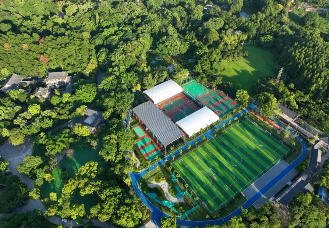 一起,整个体育公园项目结合了水弹性城市理念规划,园内铺设的1606米健身路途,路面选用透水混凝土,面层为塑胶颗粒,不只便利雨水浸透,市民练习时也能起到维护效果。在旱季时,雨水花园可更好地收集雨水,削减内涝状况的产生,一起,雨水花园也为公园增添了一抹生态之美。在风雨球场上方,装置有电动推拉弹性棚,翻开后可掩盖整个运动活动场所,即便下雨天也能照旧运动。